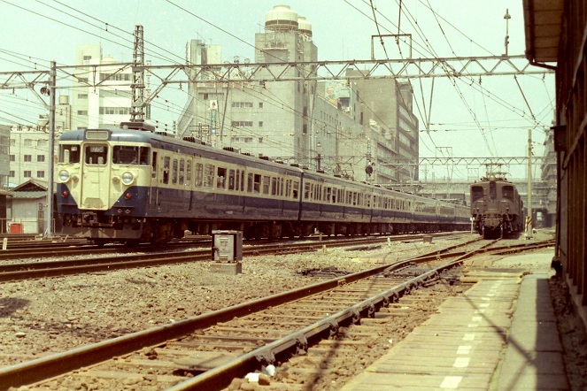 1975年5月蒲田駅通過(153系低窓型,上り普通電車) | ||