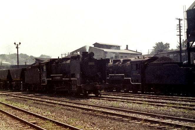筑豊炭田の石炭集積地・直方。そこに直方機関区があり、多くの9600型とD60が 配置されていました。 筑豊本線からは石炭輸送のため多くの路線が縦横に伸び、直方機関区はその拠 点基地の1つとして大きな役割を担っていました。石炭事業は当時すでに斜陽産 業でしたが、まだ当時の日本全国の採炭量は最盛期(1961年の5,440万t)の半分 程を生産していましたので、かなりの石炭列車があり、その輸送に従事する機 関車の大切な基地、それが直方機関区でした。